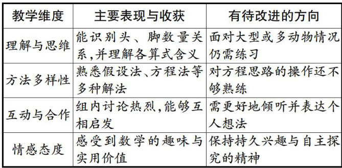 小学数学教学肩负着引领学生迈人逻辑思维世界的重任,如何让学生告别机械式记忆与重复演算,真正实现对数学概念与方法的灵活把握,是众多教育者孜孜以求的目标。在探索这一问题时,“鸡兔同笼”问题以其趣味性与生活化特质成为绝佳范例。通过借助头数与脚数的数量关系,学生不仅能完成常规计算,还能体会问题分析、方程运用以及多角度思考的内在逻辑。(剩余5286字)
