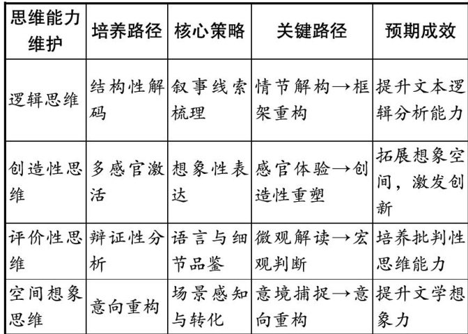 随着新课程改革的深入推进,语文教育愈发重视对学生逻辑思维、创造性思维及批判性思维的综合性培养。在此背景下,读写一体化教学策略以其独特的实践路径,成为实现这一目标的有效抓手。通过重构阅读与写作的有机联系,教师能够借助文本解析与创作表达的双向互动,引导学生逐步提升逻辑推理、想象创新与文本评价能力。四环递进式教学模式一一从思维图式构建到多元感官体验,再到分析鉴赏与创作表达,形成系统化的思维训练序列,体现了教学设计的整体性思考。(剩余5807字)