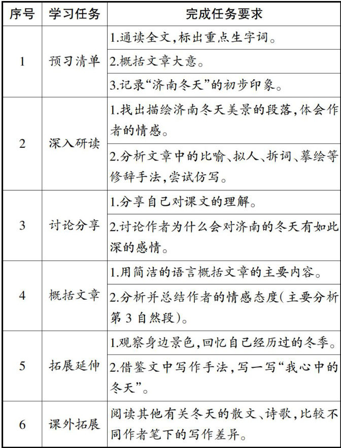 初中语文学习任务单的设计与实施