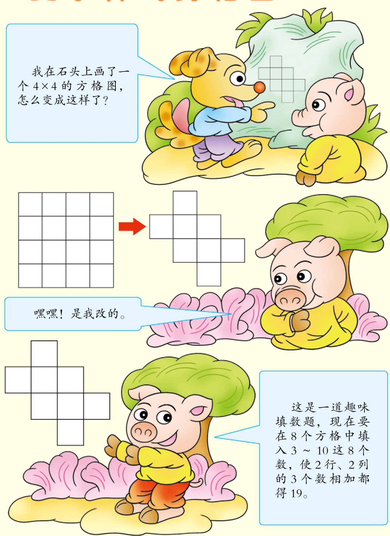 我知道啦!这是因为中间的4个数都被多加了1次,那么就从中选出相加得24的4个数填在中间4格,再填其他数。(剩余18字)