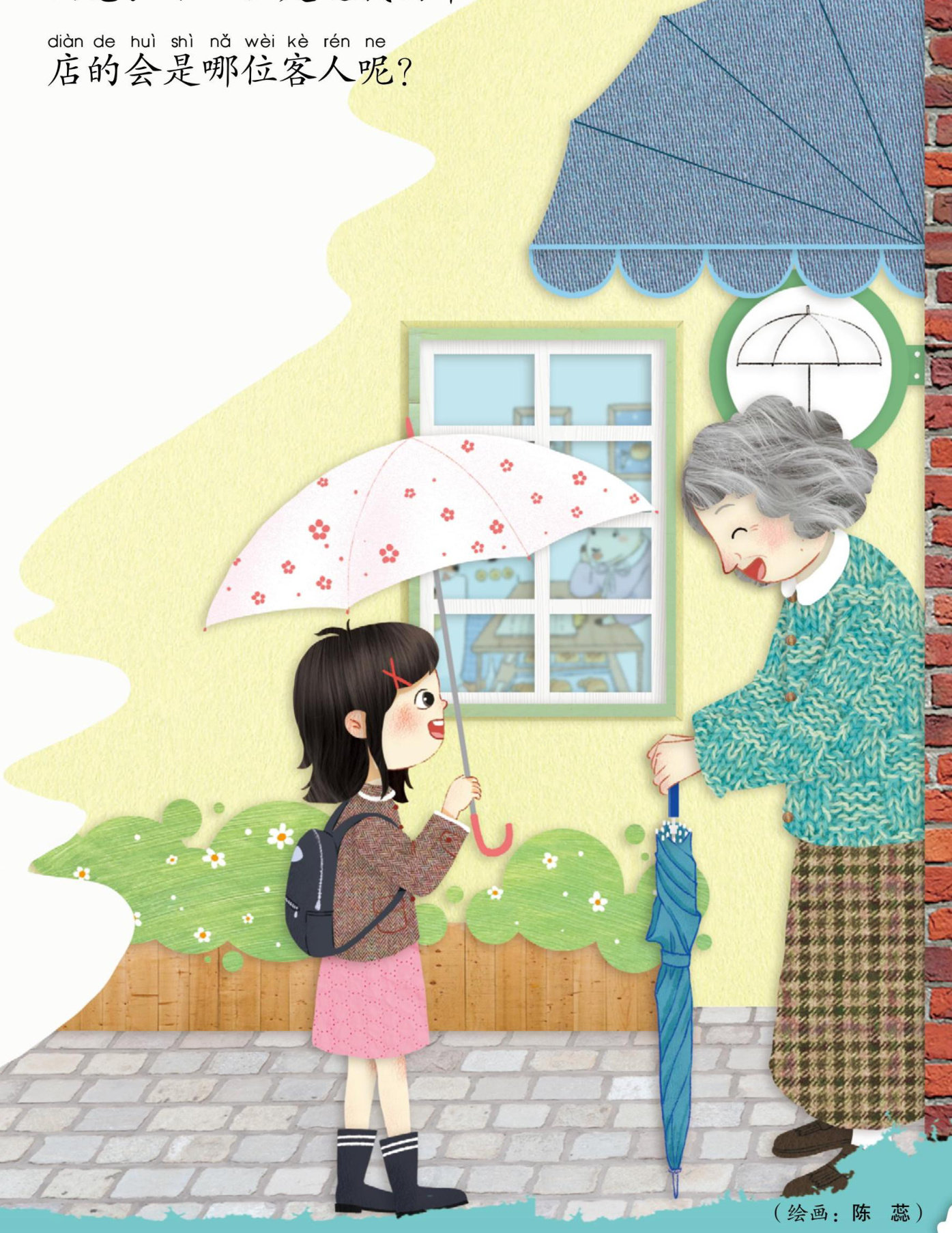 “你撑开试试呀!”老奶奶把小白伞取下来,递到女孩的手里。