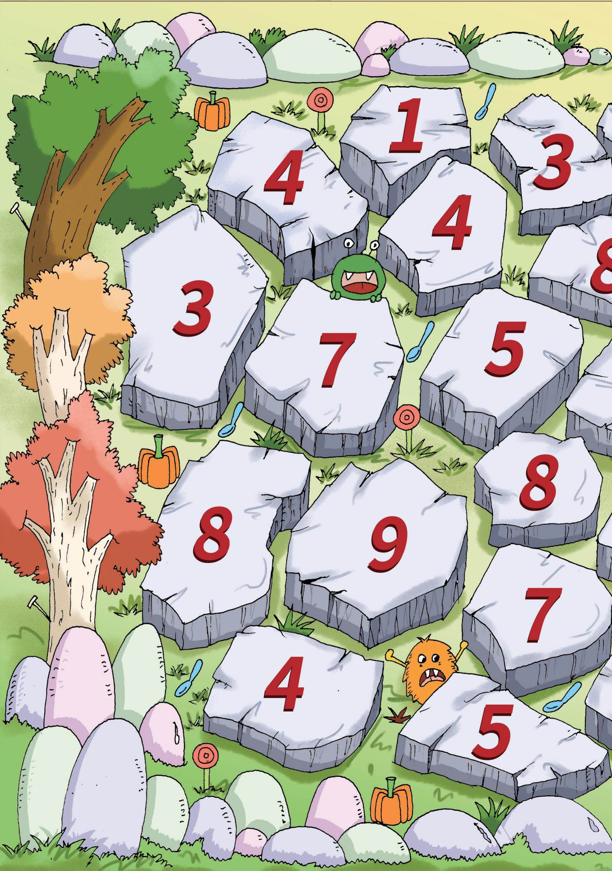 米米鲁来到一个进山的路口。路口地上的每块石头上分别刻有1—9中的某个数字。米米鲁只有踩到数字之和为60的10块石头才能顺利通过路口。(剩余9字)