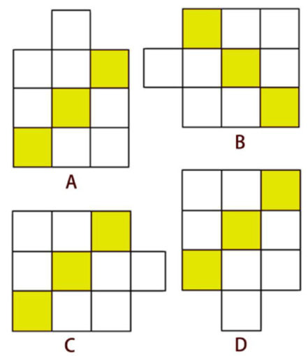 A、B、C、D四个图形中,有一个与其他图形不一样,你看出来了吗?