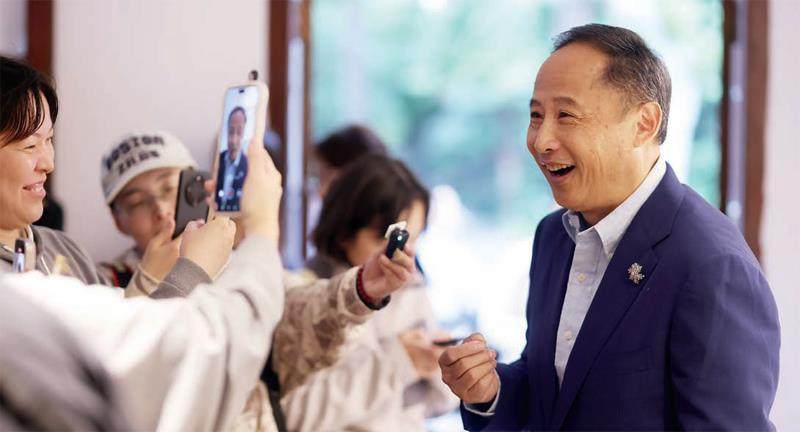 周野芒在“菜肉馄饨·思南会客厅”接受记者采访。