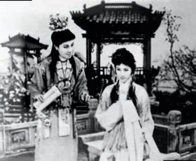 1962年越剧电影《红楼梦·读西厢》徐玉兰饰贾宝玉,王文娟饰林黛玉。