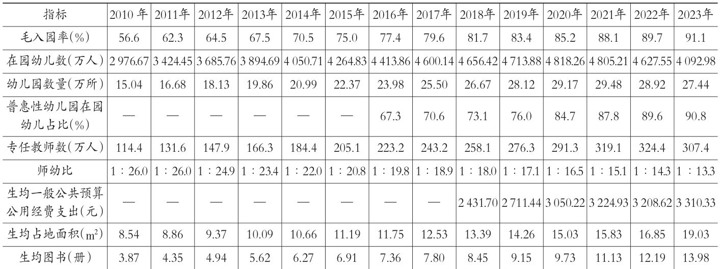 当前,我国教育已由规模扩张阶段转向高质量发展阶段[u。截至2023年,我国学前教育毛入园率为 91.1% ,已提前完成“十四五”规划所提及的“毛入园率 90% 以上"的发展目标[2],人民群众对“幼有所育"的现实诉求已基本满足。然而,历经大规模的普及发展阶段之后,持续朝普及、普惠、安全、优质方向发展的学前教育事业仍需回应并厘清学前教育高质量发展的核心内涵,同时理性审视当前学前教育发展所拥有的现实基础和所面临的发展困境,进而明晰实现学前教育高质量发展的逻辑理路与深化举措。(剩余23356字)
