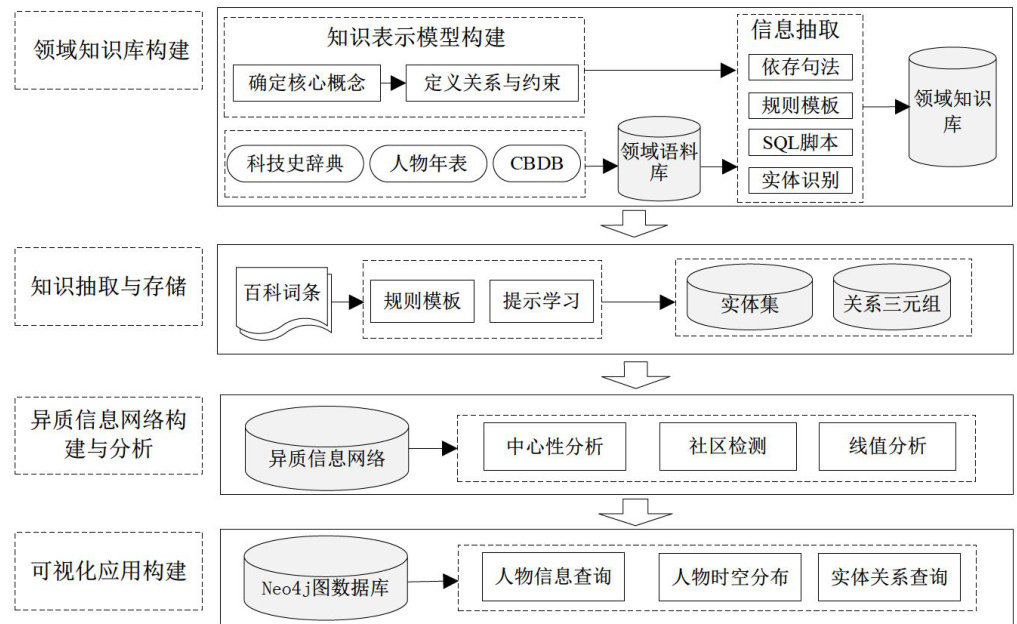 Abstract To address the issues of multi-source heterogeneity and semantic association deficiencyin the knowledge organization of ancient scientific and technological documents, this paper proposes a knowledge mining and visualization approach based on heterogeneous information networks.Firstly,a domain knowledge representation model is designed to construct an initial knowledge base.Next,online encyclopedic data are collected,from which triplesare extracted through rule templates and large language models.Finaly,the triple dataset is transformed intoa heterogeneous information network,and key metrics such as degree distribution, centrality,and community structureare analyzed.Avisualization application is built based on multi-dimensional datasets to intuitively present the semantic relationships among knowledge units in the ancient scientific and technological system,providing tool support for the digital organization and knowledge discovery of ancient scientific and technological documents.