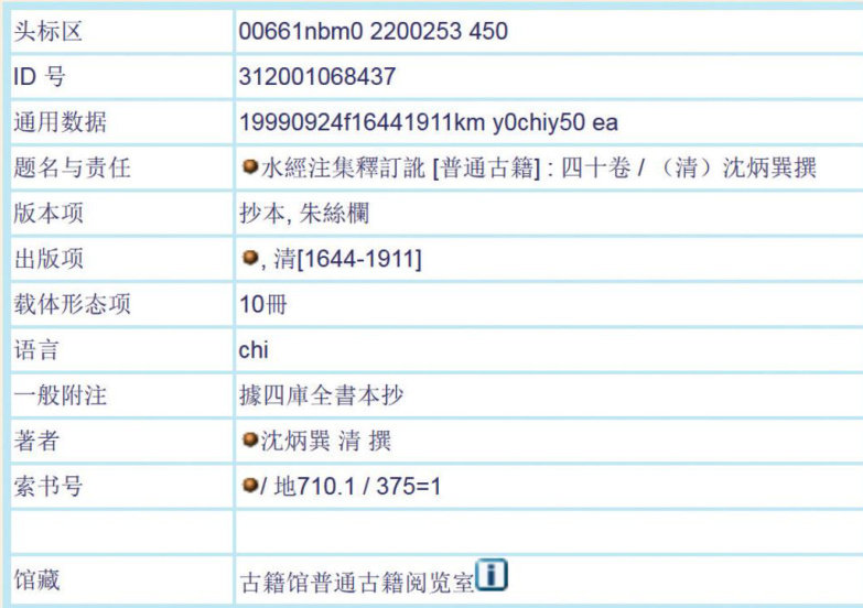 清代的《水经注集释订讹》是《水经注》的一个重要校注本,写定于乾隆十四年(1749年),详见胡适《记的〈水经注〉校本的过录本》一文。乾隆年间纂修《四库全书》的时候将《水经注集释订讹》收入《史部·地理类·河渠之属》。根据《四库全书总目》卷六十九《水经注集释订讹》提要的介绍,《四库》本的来源是“浙江巡抚采进本”,可知是地方官员奉乾隆谕令为编纂《四库全书》征集图书的时候,将沈氏手稿征集送入了《四库全书》馆。(剩余983字)
