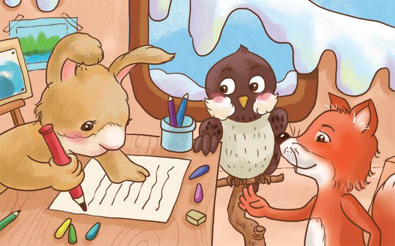 外面冰天雪地,小兔的家里却是暖意融融。大家正在欢乐地举行派对,庆祝小兔的绘画作品得奖。