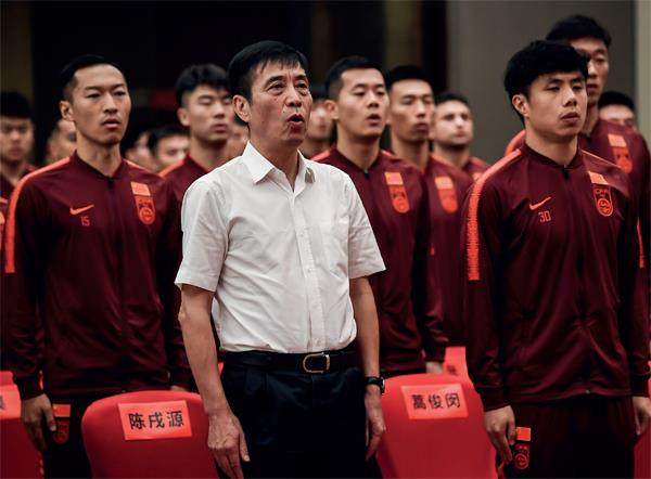 2019年9月7日,广东广州,陈戌源(中)在中国国家男子足球队出征2022世界杯预选赛誓师大会上。图/IC