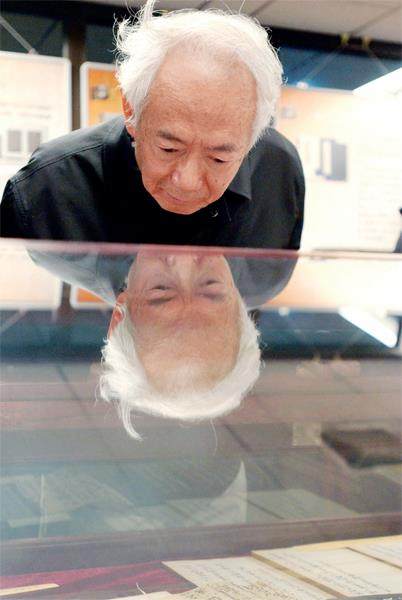 2003年11月1日,沈鹏在中国国家图书馆观摩历代书法名家的法帖珍品。本文图/中新