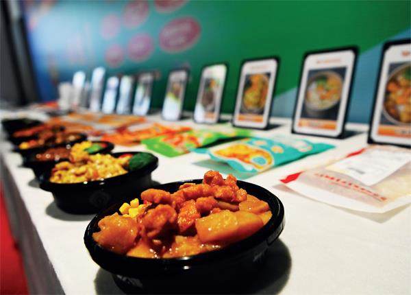 2023年7月21日,山东聊城市一次农产品展销会上,一企业参展的传统鲁菜预制菜。图/中新