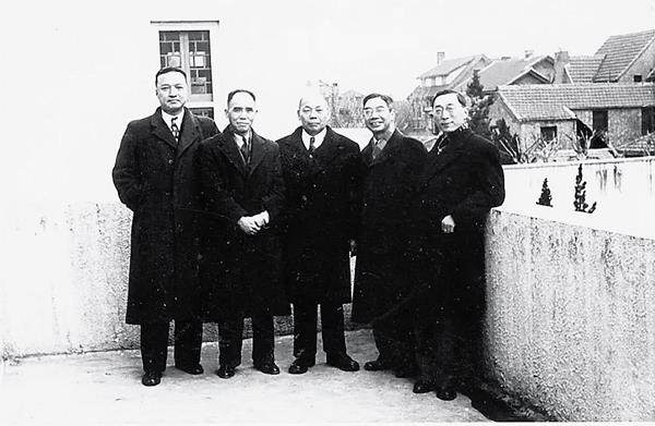 1949年3月,中国工程师代表团赴南京请愿前在上海合影。从左至右:顾毓瑔、赵祖康、侯德榜、茅以升、恽震。供图/赵国通