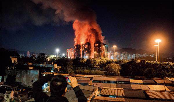 11月26日,香港新界大埔区宏福苑发生火灾。图/视觉中国