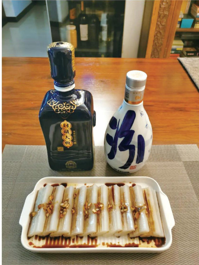 最近几天在喝清香型的汾酒和汾阳市酒厂的封坛纪念酒,就一直琢磨,想为这款酒做一道合适的下酒菜,后来发现有一道菜恰好般配,它就是皮冻。