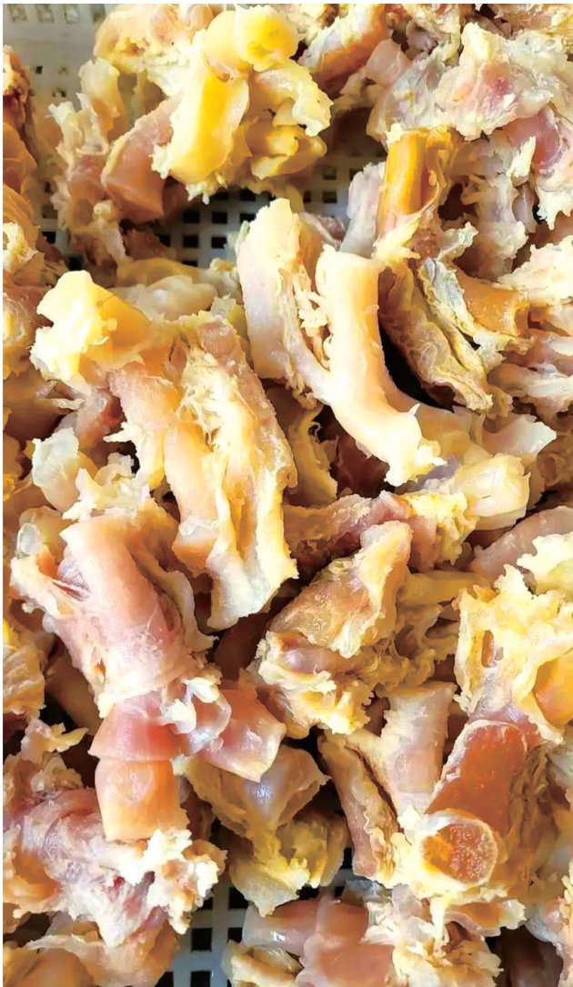 前面说过:牛肉腱子好吃很重要一个原因是里面筋系发达。那么,只吃筋的话,好不好吃呢?