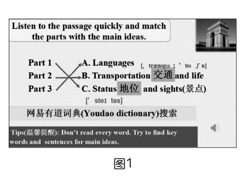 ①课堂上引导学生利用网易有道词典查询生词,了解单词的发音及用法,并对学生进行学习方法的指导,培养学生英语自学的能力。
