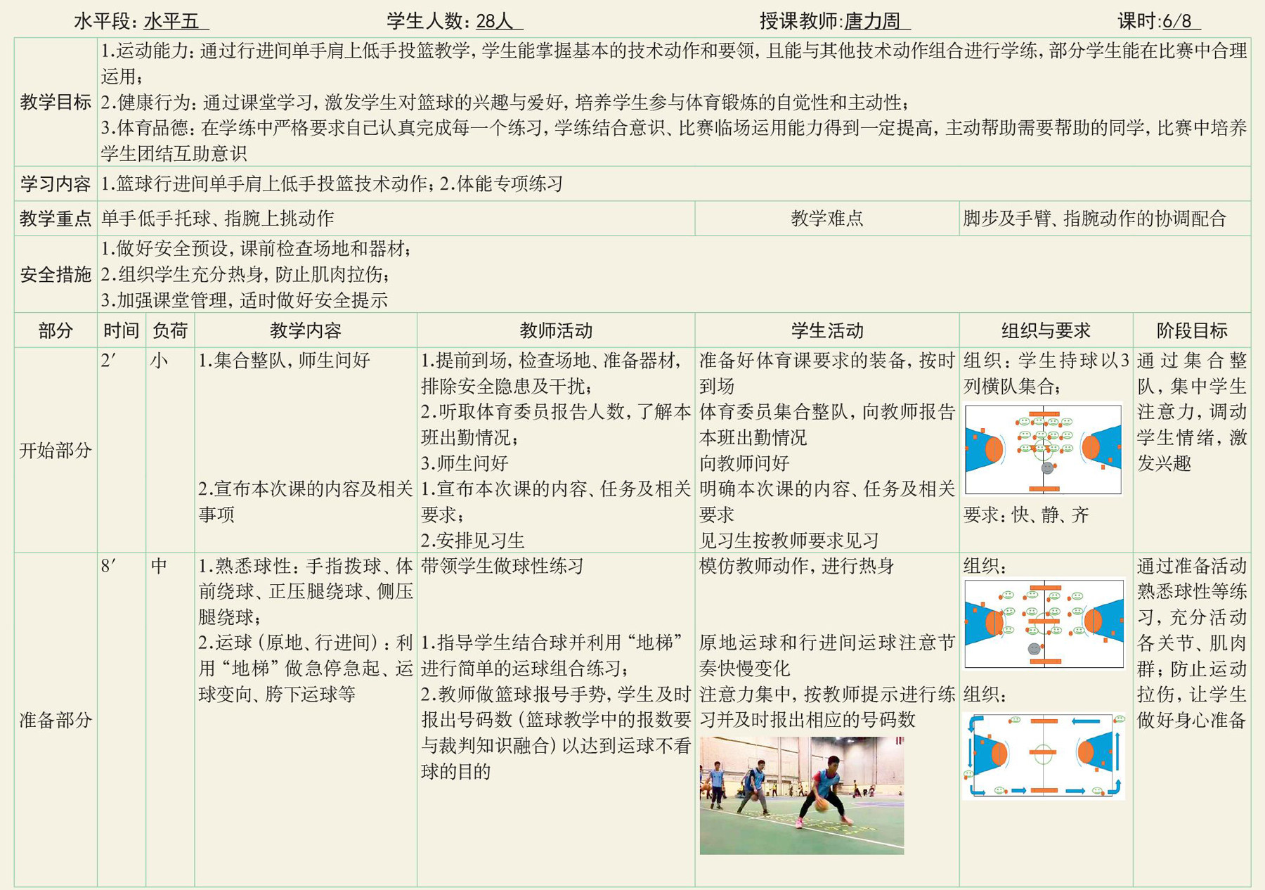 水平五(高一年级《篮球——行进间单手肩上低手投篮》教案