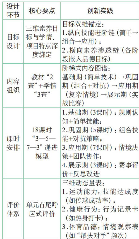 《义务教育体育与健康课程标准(2022年版)》明确将发展学生核心素养置于课程目标的核心地位1。大单元教学凭借整体性、系统性优势,为核心素养落地提供结构支撑,而“学、练、赛、评”一体化强调学、练、赛、评有机融合,二者紧密联系:核心素养是“学、练、赛、评”的起点与归宿,其运动能力、健康行为、体育品德三大维度决定“学”的内容选择、“练”的方法设计、“赛”的形式创设与“评”的维度设定;“学、练、赛、评”一体化是核心素养培育的有效路径,其中“学”为认知基础、“练”为技能巩固关键、“赛”为素养集中展现场域、“评”为过程保障与导向;大单元教学还能打破课时限制,为“学、练、赛、评”深度整合、螺旋递进提供时间与空间支撑[2]。(剩余5355字)