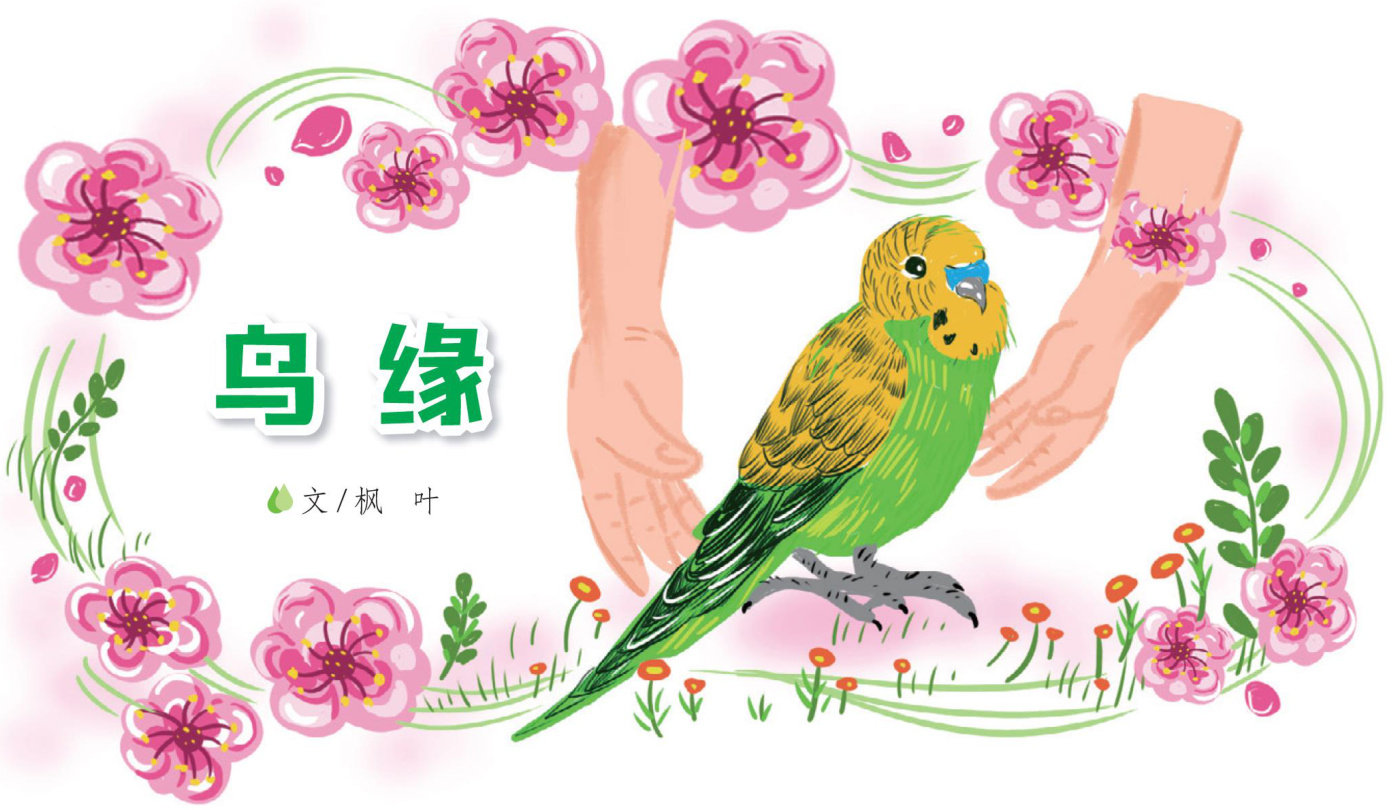 傍晚,蒋文越漫不经心地走在草坪上。忽然,他看见了一只绿羽毛的鹦鹉,它正在啄食一朵粉红色的小花。哦,这是一只喜欢吃花的鸟儿啊,怪不得它长得那么漂亮。蒋文越很喜欢这只鸟儿,他蹲下来,伸出手,鸟儿居然朝他跳过来,他轻轻捉住了它。