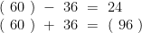 题目:小虎在计算一道算式时,把“ +36′ 错抄成“-36”,结果是24,原来算式的正确结果是( )。