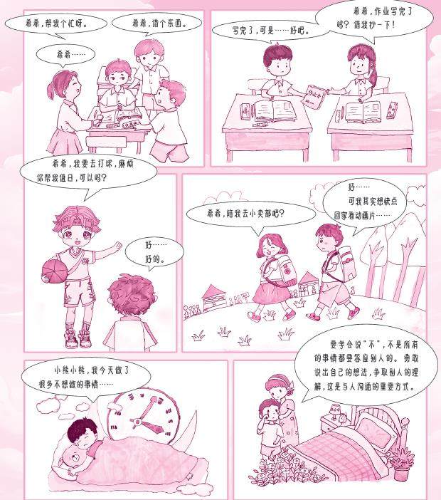 亲爱的小朋友,你有没有像希希一样,明明不想做某件事,却因为害怕别人不高兴而勉强答应呢?其实,学会说“不”是保护自己、尊重自己的表现呢!真诚地表达自己的想法并不会让你失去朋友,反而会让你赢得更多尊重。记住哟,每个人都有说“不”的权利。希望大家都能像希希一样,学会说“不”,做一个既善良又有主见的(剩余3字)