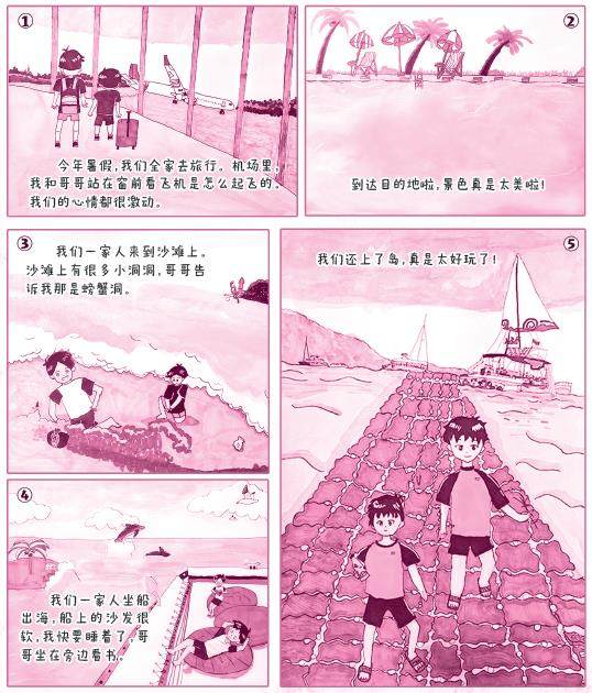 今年暑假,我们全家去旅行。机场里,我和哥哥站在窗前看飞机是怎么起飞的。(剩余10字)