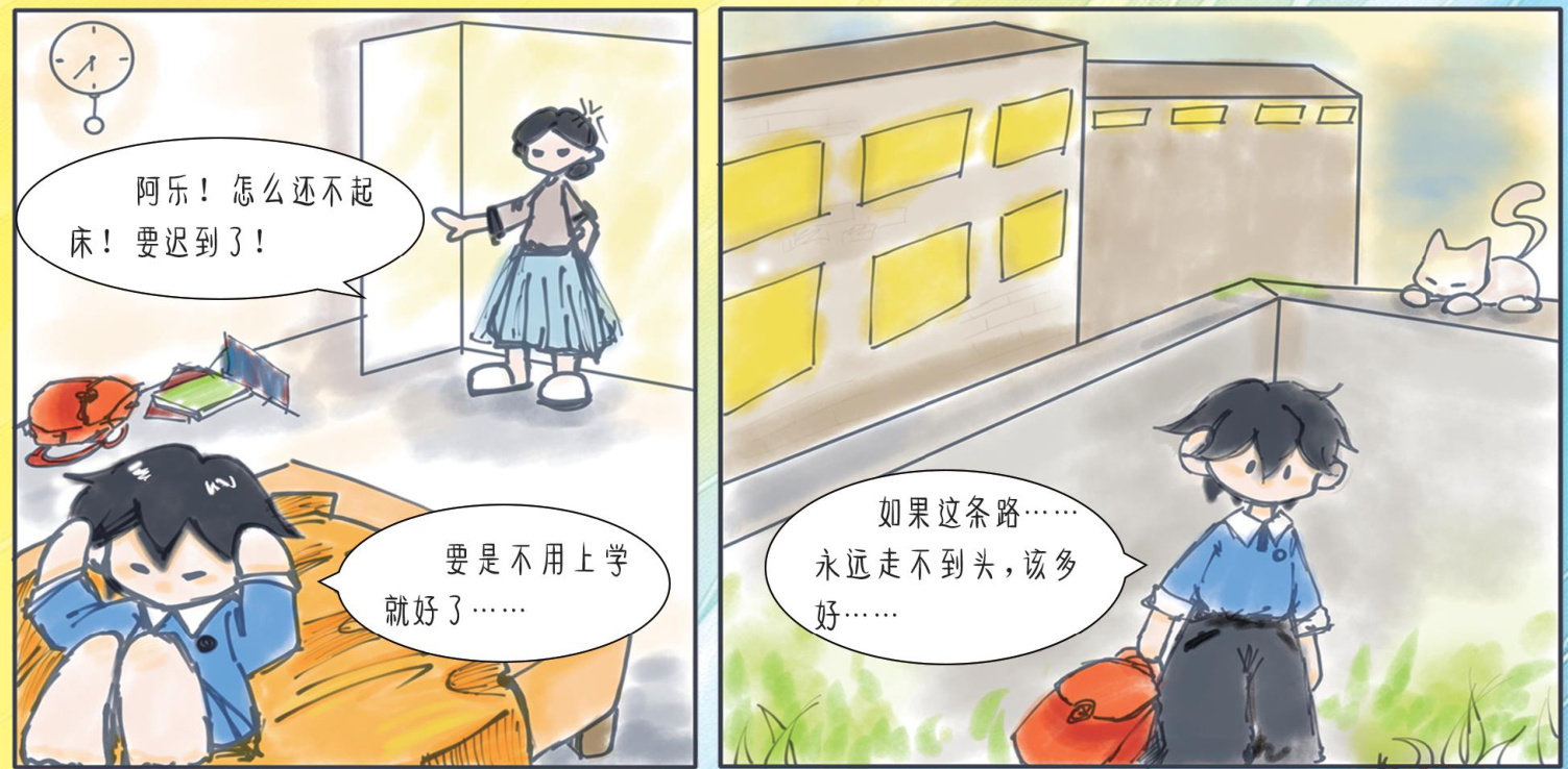 亲爱的小朋友,你有没有像阿乐一样,早晨躲在被窝里不想起床上学呢?其实,每个人都会有“不想上学”的小情绪,但有时候,一点小变化就能让这个小情绪飞走一—也许是在课上画出的心里的小故事被大家称赞,也许是因帮助同学得到了感谢,又或者看到一只自力更生的小瓢虫这些小小的“魔法时刻”,会让我们发现学校里不只有课本和作业,还有同学的笑脸、有趣的课堂,以及那些意想不到的惊喜。(剩余82字)