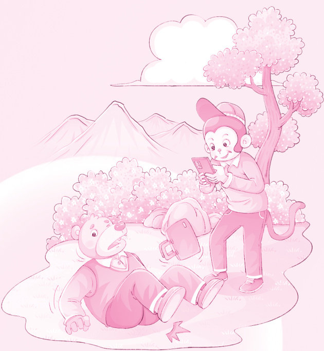 有一回,黑熊先生在路上摔了一跤,被猴子大叔看见并拍了下来。猴子大叔旋即把视频发到了森林居民微信群里,让大家都看到了黑熊先生的狼狐样。再有一回,鸭大妈和鹅大婶因一件小事吵了起来。猴子大叔把她们吵架的视频发到朋友圈里,让鸭大妈、鹅大婶当了一回“网红”。(剩余952字)