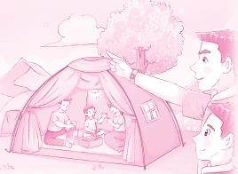 周末,我和爸爸妈妈来到大容山露营。露营区的人可真多呀!看,一个个帐篷像一朵朵蘑菇似的遍布在山上。