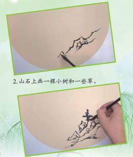 1.在裁切为圆形的生宣纸上,用毛笔蘸黑墨勾画山石。(剩余601字)