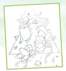 1.先用铅笔在水彩纸上勾画出三只蝴蝶和一个大三角形背景框。
