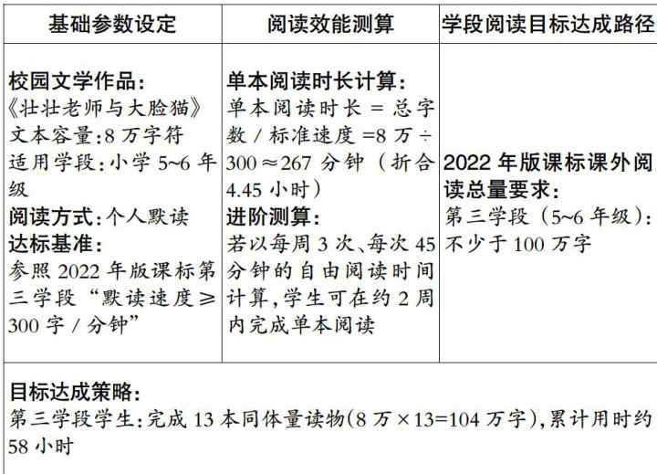 整本书阅读作为语文核心素养培育的重要载体,其教学实施路径与效果评估长期受到教育界关注。基于2022年版课标中整本书阅读要求,运用人工智能技术对课标规定的阅读量进行计算分析,得出保障阅读水平提升的量化标准,确保课标中的“基本量"达标。针对整本书阅读教学中的问题,笔者从以下三方面提出优化路径。