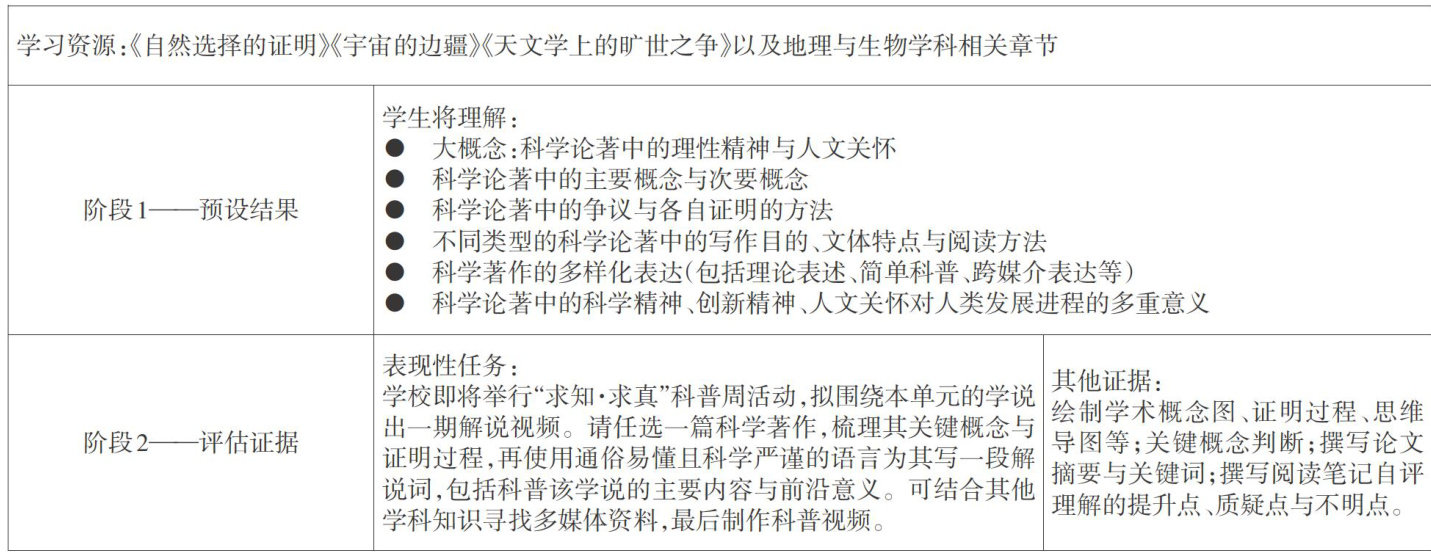 基于逆向设计的高中语文单元学习活动评价策略