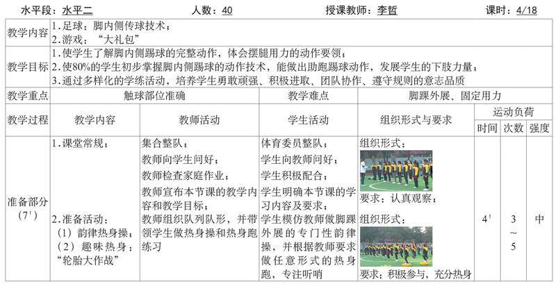 本节课以《义务教育体育与健康课程标准(2022年版)》为依据,贯彻落实“立德树人”根本任务,坚持“健康第一”育人理念,以学生发展为中心,重视学生的主体地位。通过学习脚内侧踢球技术,培养学生的体育学科核心素养。在脚内侧踢球学习初期,通过合理有效的辅助教学手段,使学生在学习过程中逐渐掌握脚内侧踢球的动作要领。(剩余588字)