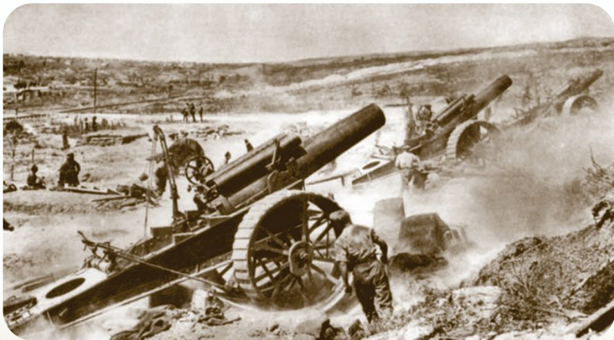 1914 年,欧洲爆发了一场规模空前、破坏性巨大的战争。在这场战争的大部分战中,士兵都要躲在战壕里。火炮被广泛使用,潜艇、坦克和飞机也首次投入使用,甚至现代化学武器也被投入使用。