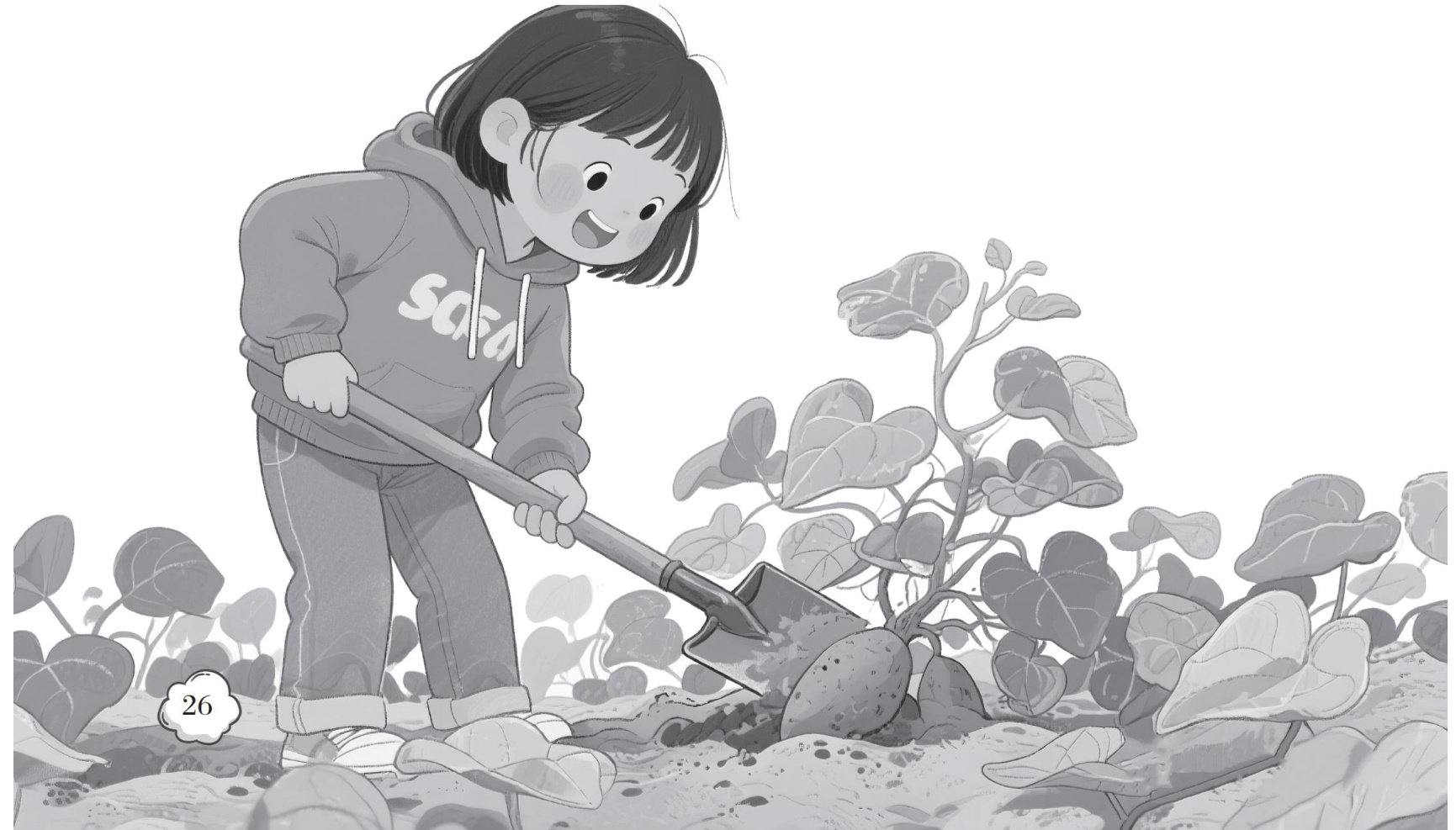到了红薯地,只见重重叠叠的红薯叶把黄土地遮得严严实实。我迫不及待地擦紧小铁锹就要刨红薯,爷爷急忙伸手按住我的胳膊:“不着急,等你爸爸把红薯秧割掉再挖。”爸爸应声蹲下身,左手虎口卡住红薯秧根部,右手擦着镰刀来回磨了两下,刀刃贴着地皮“嘈”地割下去,接着顺势一提,带着泥土的秧子就离了地。(剩余946字)