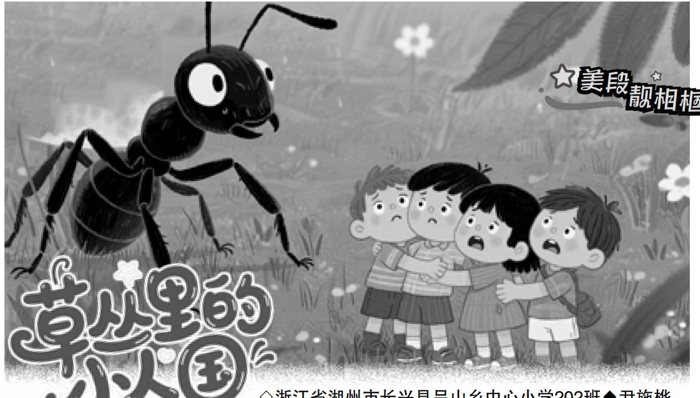 可是,没有太多时间留给我们感慨,一阵咕噜噜的声响从肚子里传来,我们决定先去找食物—补充好体力才有精力想办法解决眼前的困境。当我们爬到槐树权上找果子时,一只蚂蚁晃着触角爬了过来,它的眼晴跟玻璃珠似的,颚部“咔察咔察”,两下就咬断比我们腰还粗的草茎。眼看着蚂蚁离我们越来越近,小果想捡起树枝去拦截它,可是树枝重得像根铁棍,我们四个人一起抬,才勉强把树枝横在蚂蚁面前。(剩余287字)