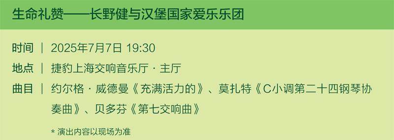 2024年至2025年是日裔美国指挥家长野健(Kent Nagano)担任汉堡国家爱乐乐团首席指挥及汉堡国家歌剧院音乐总监的最后一个乐季:在他正式卸任前,作为“告别巡演”的一部分,长野健将带领汉堡国家爱乐乐团访问中国,并登上MISA的舞台。自2015年就任以来,长野健在汉堡深耕了整整十年,并于2023年成为乐团的荣誉指挥——上一位获此殊荣的,还是半个多世纪前执掌院团的萨瓦利什(WolfgangSawallisch)。(剩余3489字)