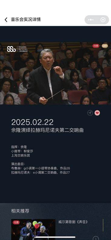 2025年5月,经过几年探索,上海交响乐团(以下简称“上交”)决定改版升级自己的数字音乐厅,将音频及视频全部集中于官网及小程序,推出流媒体包年服务(29.9元/年)。(剩余2415字)