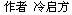 冷启方,贵州凤冈人。中国作家协会会员。作品散见于《山花》《星火》《雨花》等,有作品入选《21世纪年度小说选:2012短篇小说》。