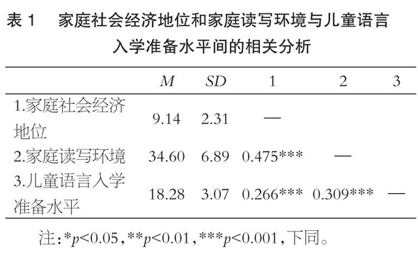 家庭社会经济地位与儿童语言入学准备水平:家庭读写环境的中介作用