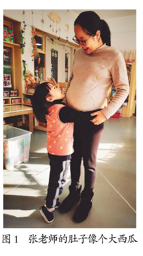 进入中班后,幼儿不仅发现自己长高了,变能干了,是幼儿园里的小哥哥、小姐姐了,还发现张老师也有了变化——肚子越来越大。张老师是一位工作不久的年轻教师,又是一位准妈妈,她兴奋、喜悦,又有一点点紧张。面对张老师日渐变大的肚子,孩子们充满了好奇心和求知欲。他们会伸出小手抚摸那个尚未谋面的婴儿,也会笑着说“张老师的肚子像个大西瓜”,憧憬着小宝宝的诞生(见图1)。(剩余5946字)