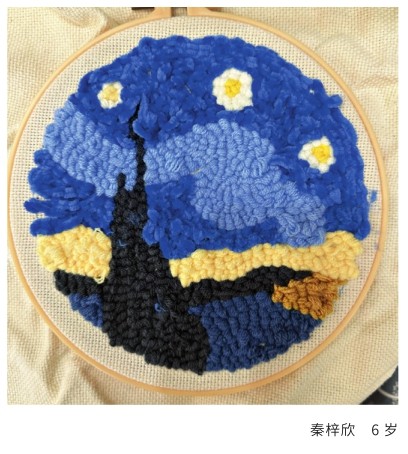 2.能够大胆使用短促的螺旋线和对比色进行创作,并尝试运用毛线和戳戳绣的方式表现星云旋转时的独特效果,体验多种创作形式的乐趣。