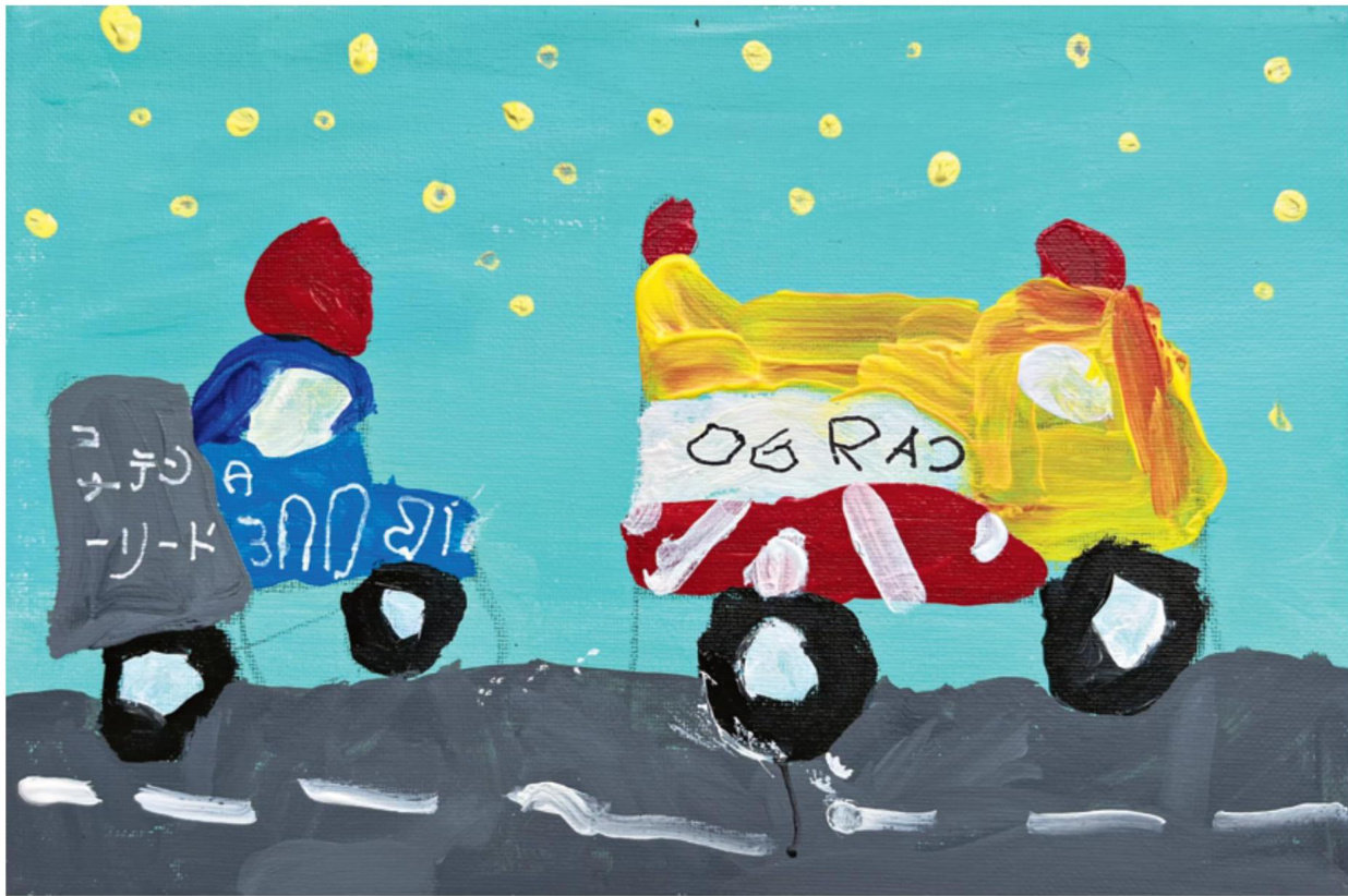 幼儿自述:我画的是一辆救护车,是从侧面看到的救护车的样子。它由长方形、半圆形和圆形组成,车上有十字形图案。(剩余489字)