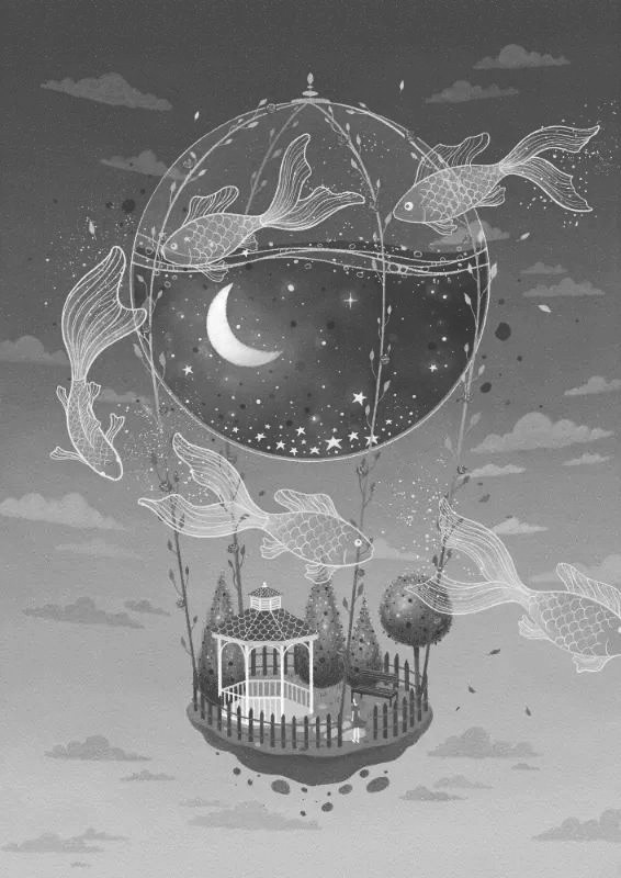 A.金鱼 B.球C.月亮/星星D.房子/花园
