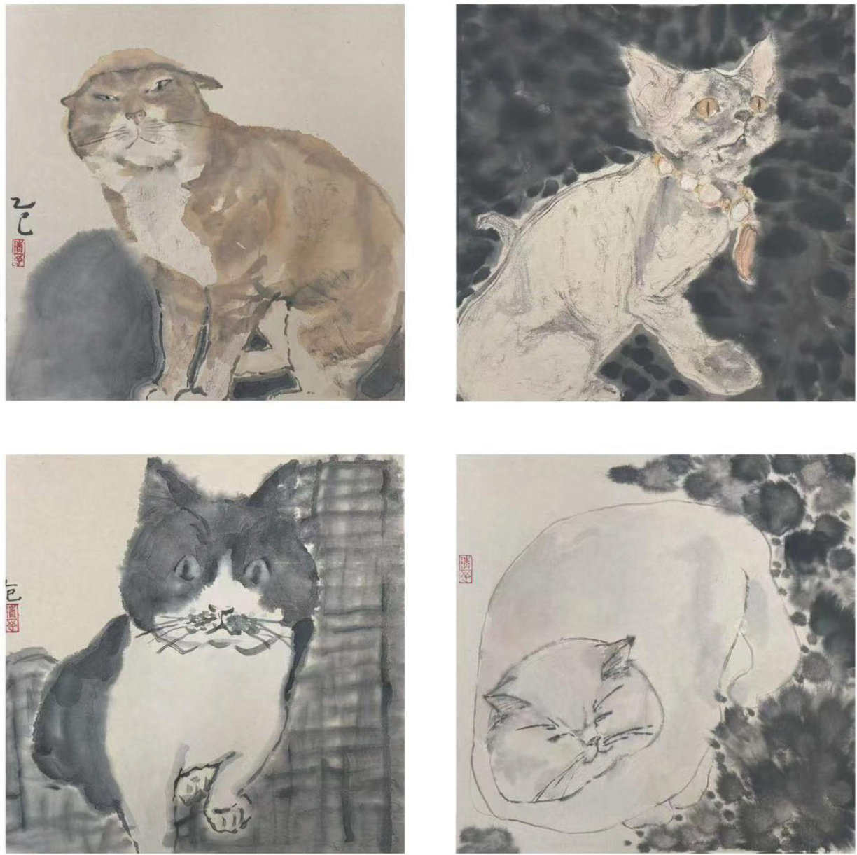 《墨戏猫影》中国画