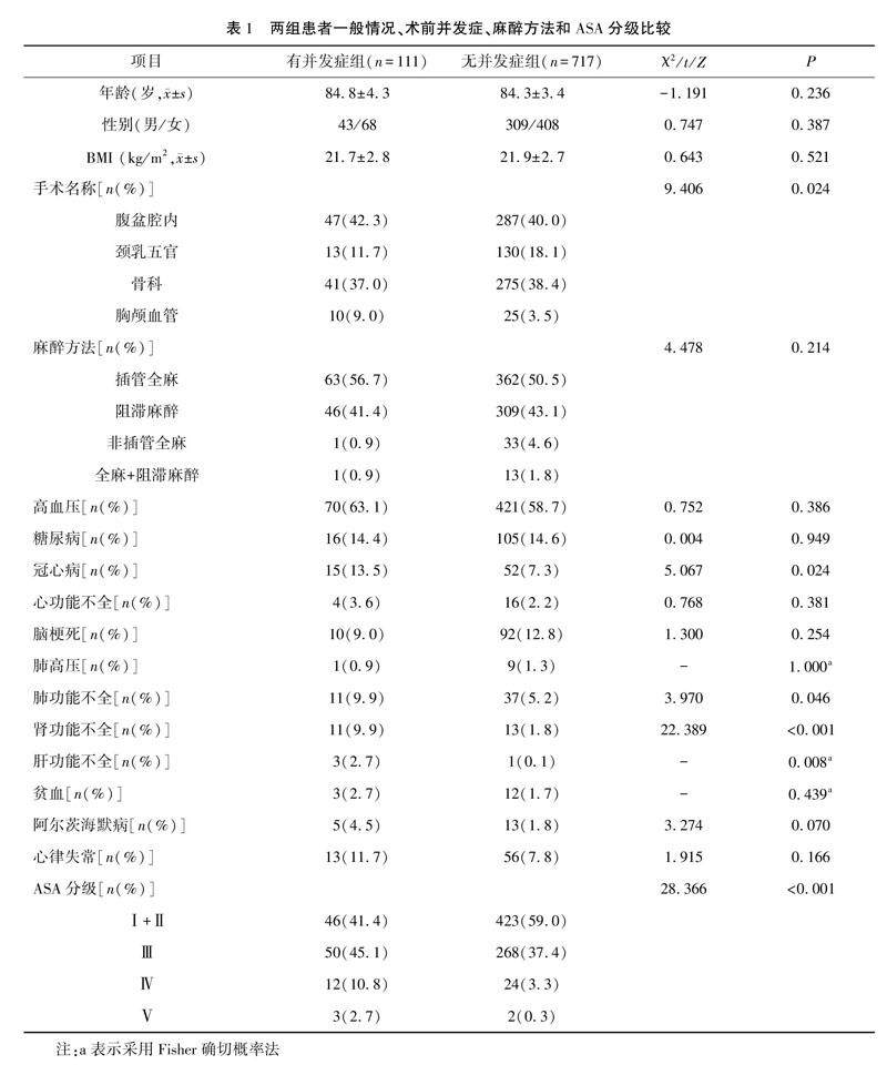 80岁以上高龄非心脏手术患者围术期并发症和危险因素分析