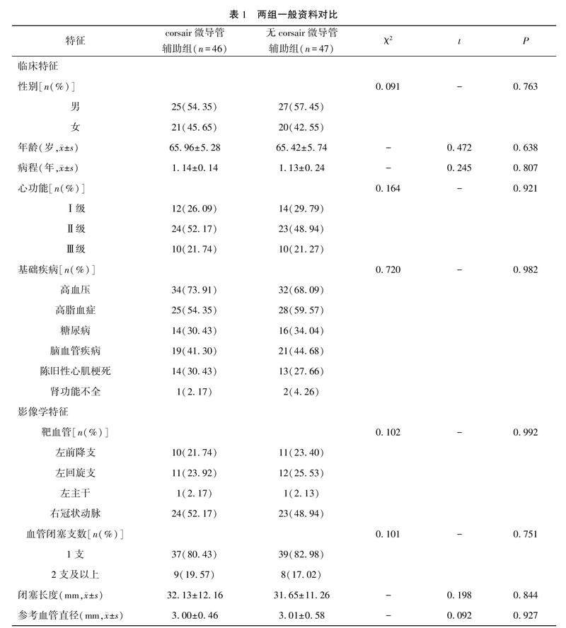 【摘要】 目的 探究采用管腔扩张微导管(corsair微导管)辅助正向夹层再进入(ADR)治疗冠心病合并冠状动脉慢性完全闭塞(CTO)的临床效果。方法 回顾性选取2019年2月—2021年3月于广西梧州市工人医院采用ADR技术治疗的冠心病合并CTO患者93例,根据其是否应用corsair微导管联合新型CTO病变专用导丝辅助治疗分为corsair微导管辅助组(n=46例)和无corsair微导管辅助组(n=47例)。(剩余9232字)