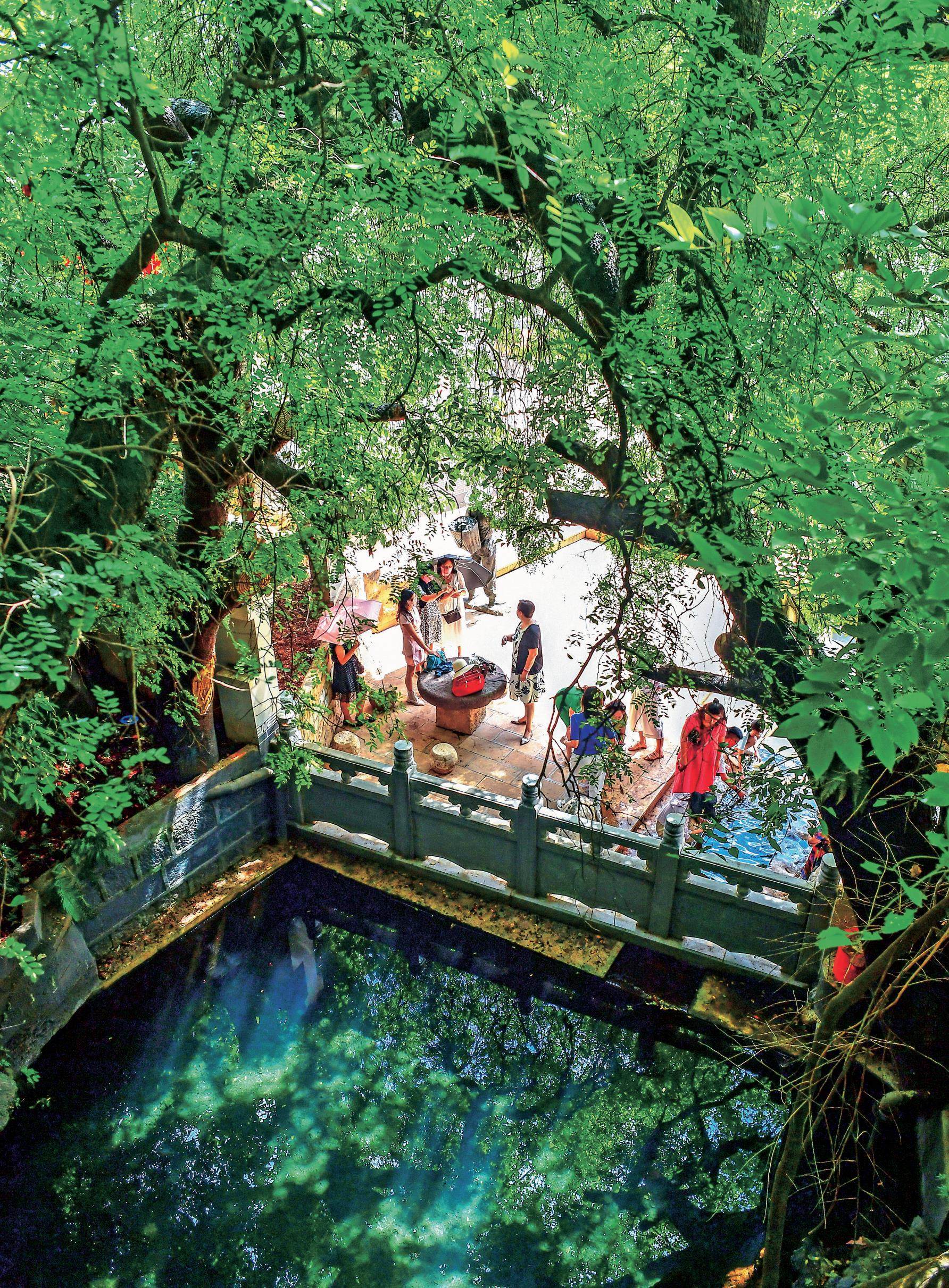 盛夏的百草村,静谧清丽。村中古木苍翠、溪流环绕,一座座青瓦白墙的白族民居和“一颗印”老宅掩映在树木之间,这个历史悠久的白族小山村,就藏在滇池边西山脚下,每年因为盛开的向日葵,成了游客争先打卡的美丽乡村。除了向日葵,百草村还有“三宝”:古寺、龙潭、药草。